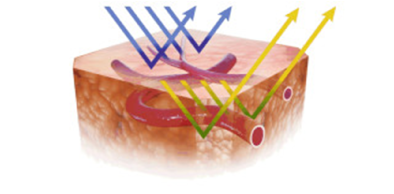血液中のヘモグロビンに強く吸収される紫(415nm)と緑(540nm)の特定の波長を照射することで、粘膜表層の毛細血管や微細構造が強調表示できるOLYMPUS社独自の画像強調観察機能です。がんなどの病変の早期発見に寄与してきています。また拡大観察の併用によって病変の悪性度や範囲といった高精度な観察が可能です。